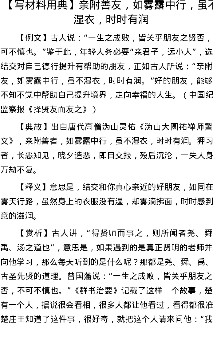 20220929【写作素材】【写材料用典】亲附善友,如雾露中行,虽不湿衣,时时有润