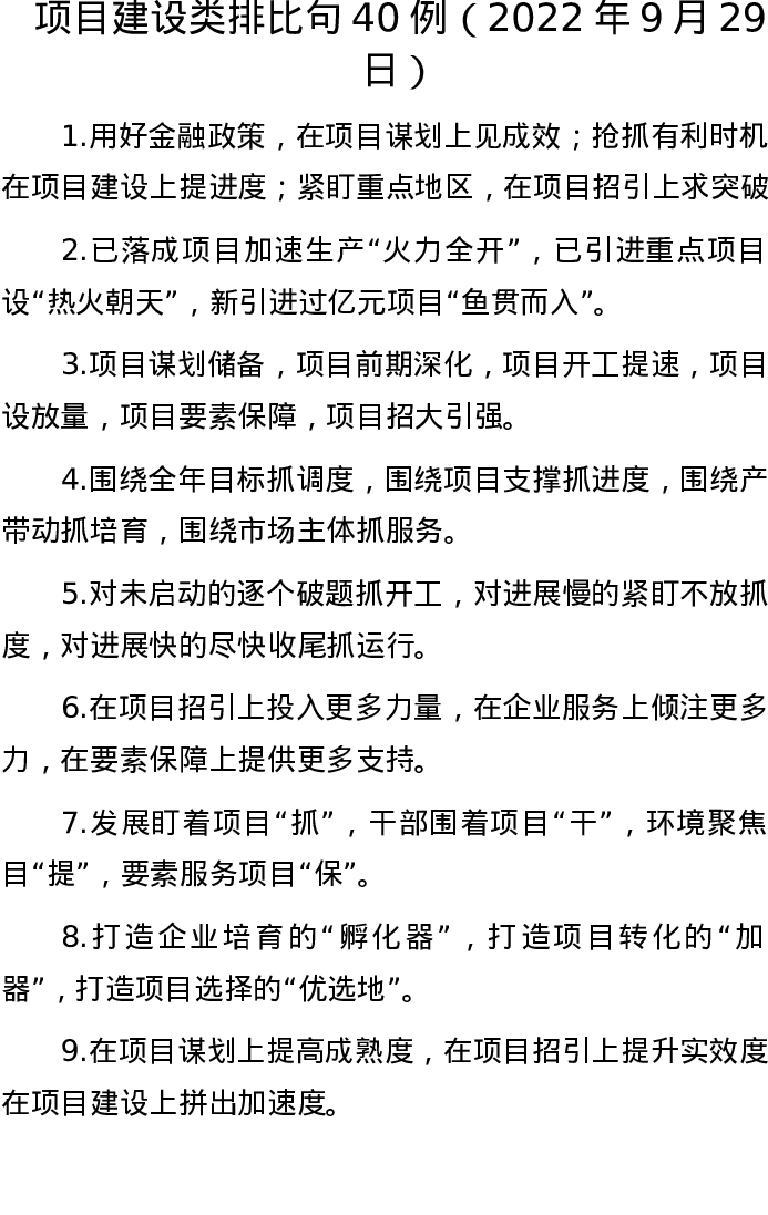 20220929【写作素材】项目建设类排比句40例(2022年9月29日)