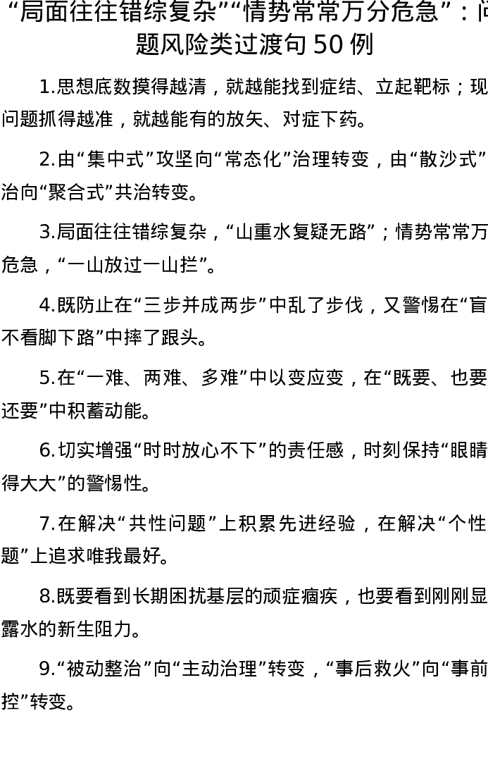 20221001【写作素材】“局面往往错综复杂”“情势常常万分危急”:问题风险类过渡句50例