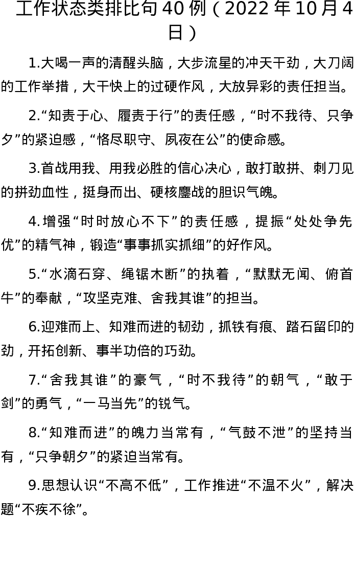 20221004【写作素材】工作状态类排比句40例(2022年10月4日)