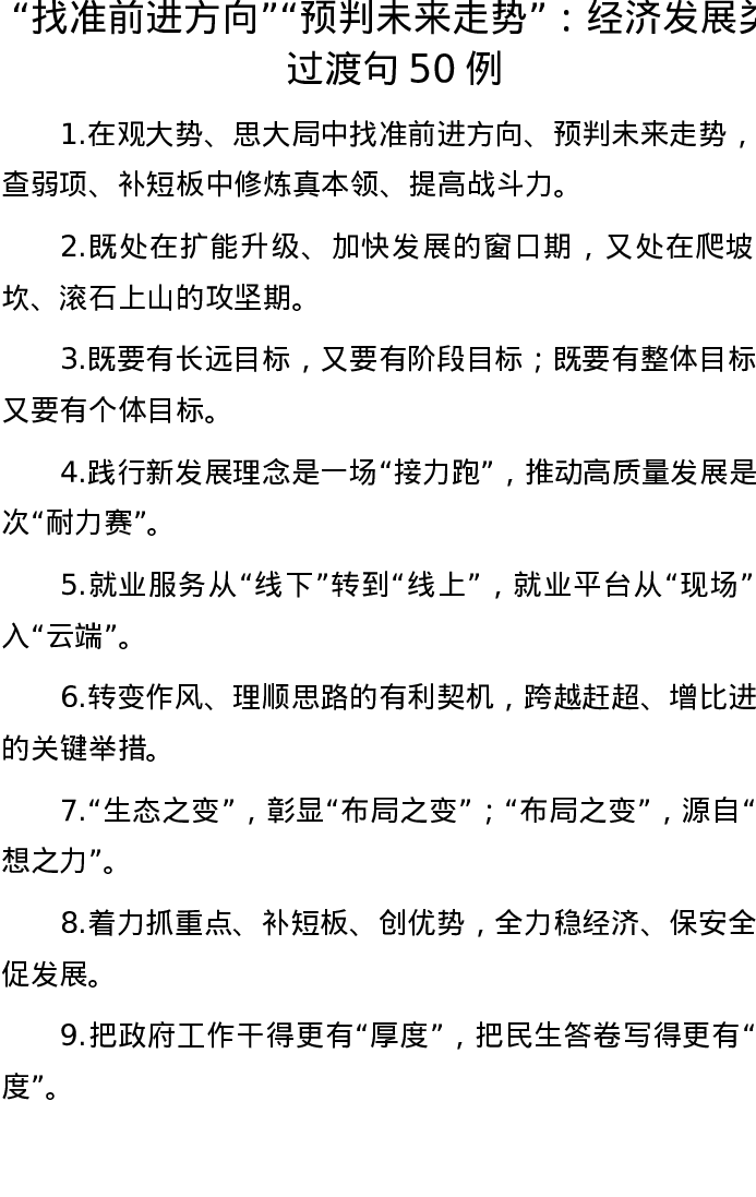 20221006【写作素材】“找准前进方向”“预判未来走势”:经济发展类过渡句50例