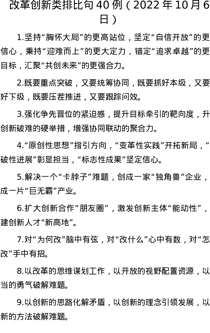 20221006【写作素材】改革创新类排比句40例(2022年10月6日)