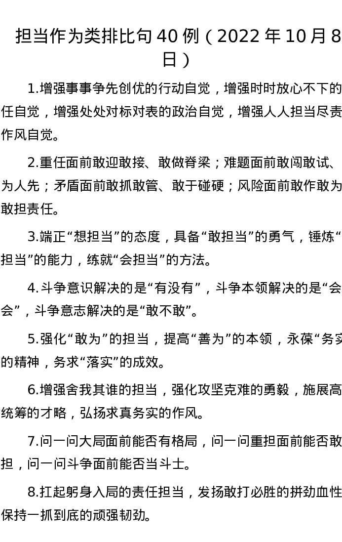 20221008【写作素材】担当作为类排比句40例(2022年10月8日)