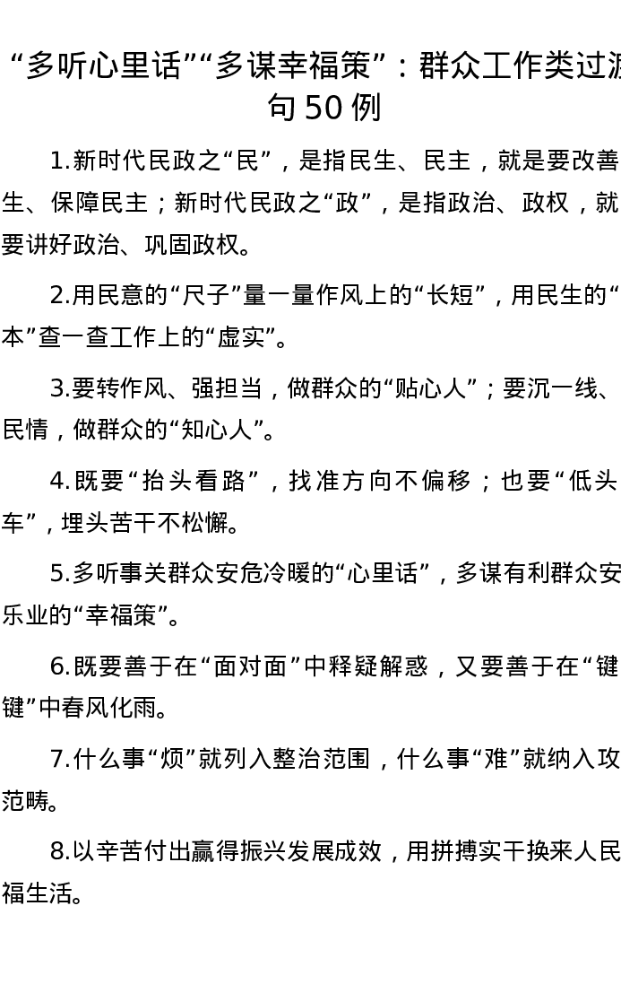 20221010【写作素材】“多听心里话”“多谋幸福策”:群众工作类过渡句50例