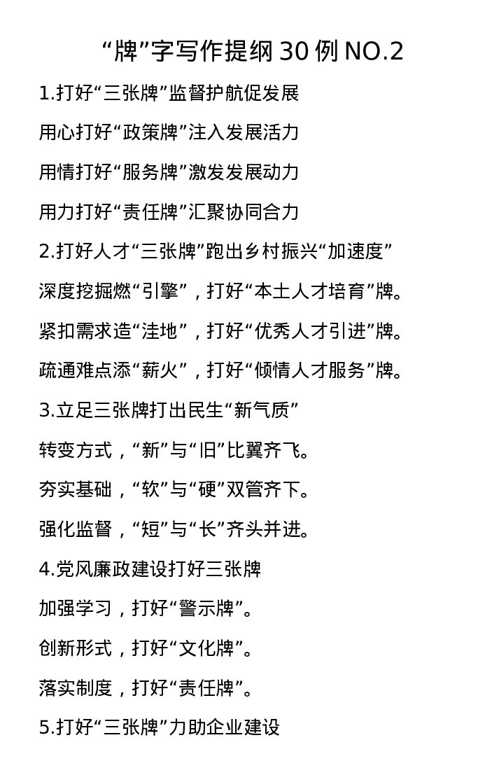 20221010【写作素材】“牌”字写作提纲30例NO