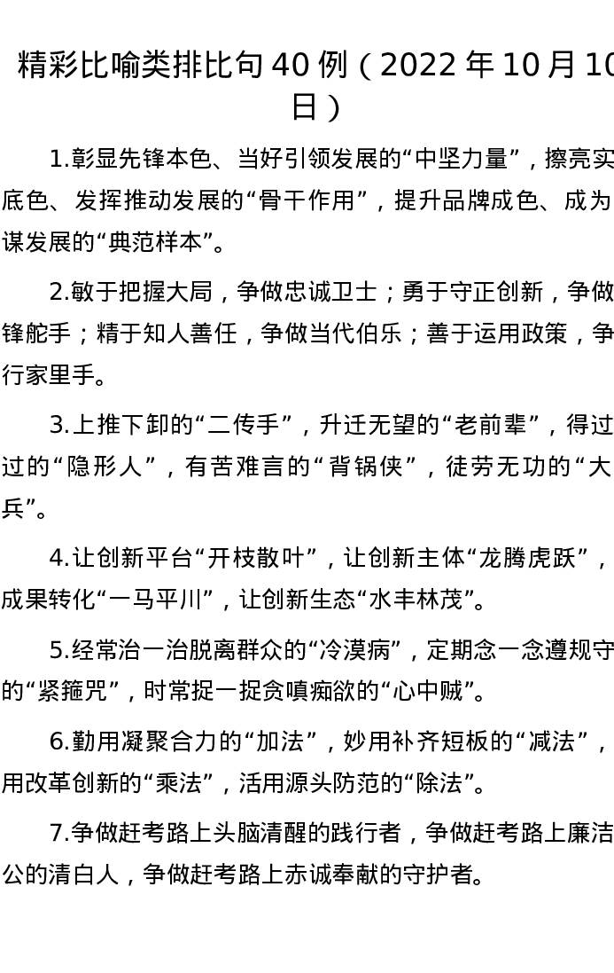 20221010【写作素材】精彩比喻类排比句40例(2022年10月10日)