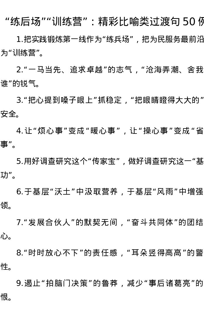 20221011【写作素材】“练后场”“训练营”:精彩比喻类过渡句50例