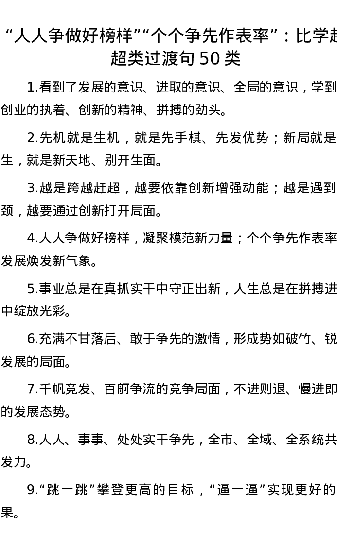 20221012【写作素材】“人人争做好榜样”“个个争先作表率”:比学赶超类过渡句50类