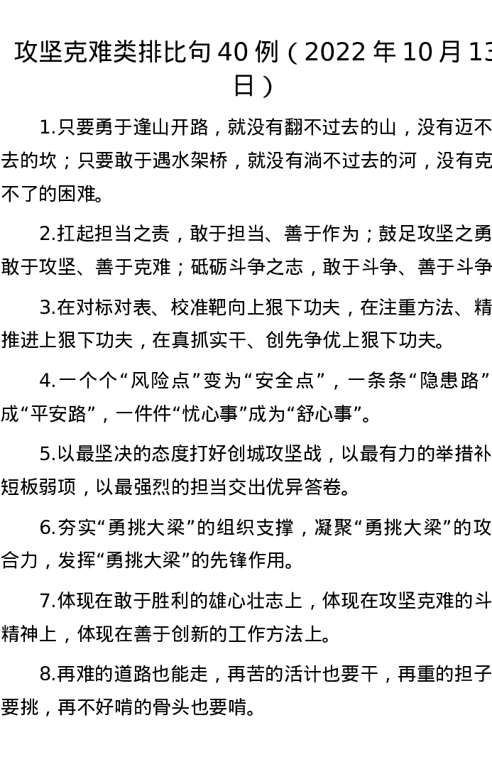 20221013【写作素材】攻坚克难类排比句40例(2022年10月13日)