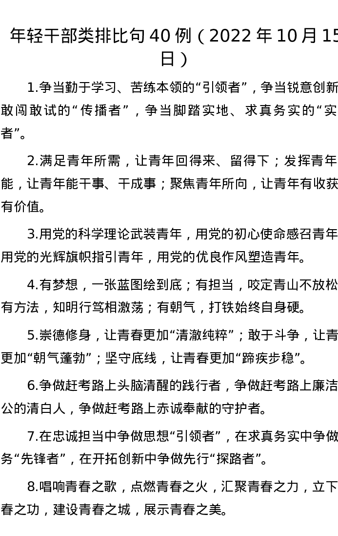 20221015【写作素材】年轻干部类排比句40例(2022年10月15日)