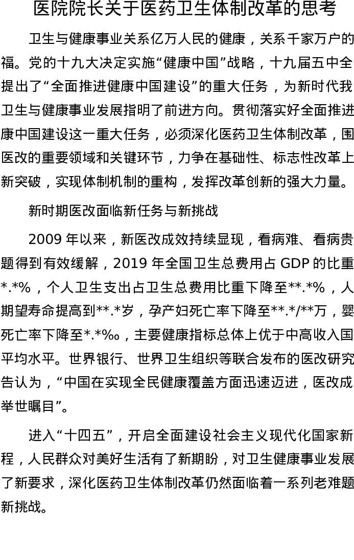 20221003医院院长关于医药卫生体制改革的思考