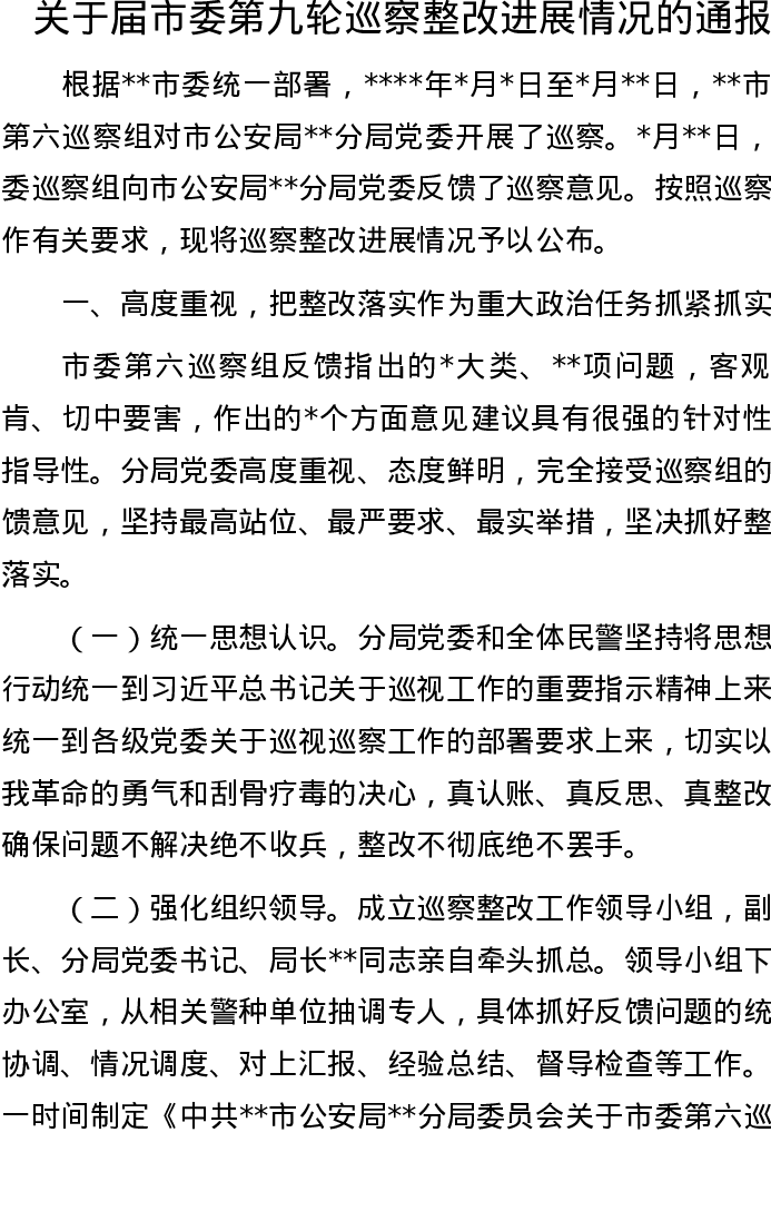 20221008关于届市委第九轮巡察整改进展情况的通报
