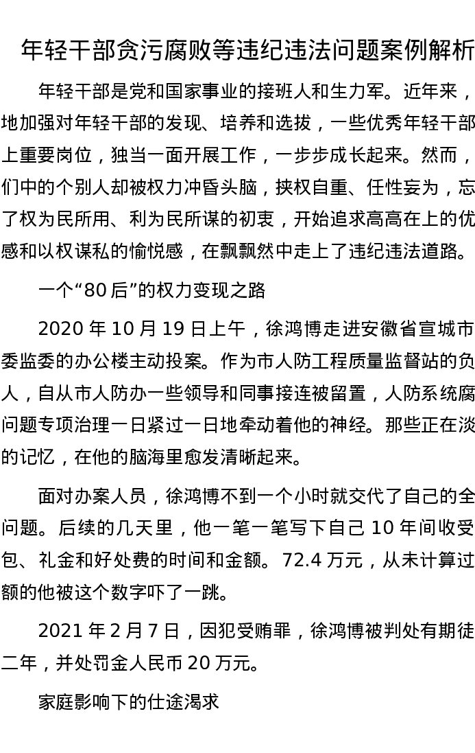 20221012年轻干部贪污腐败等违纪违法问题案例解析