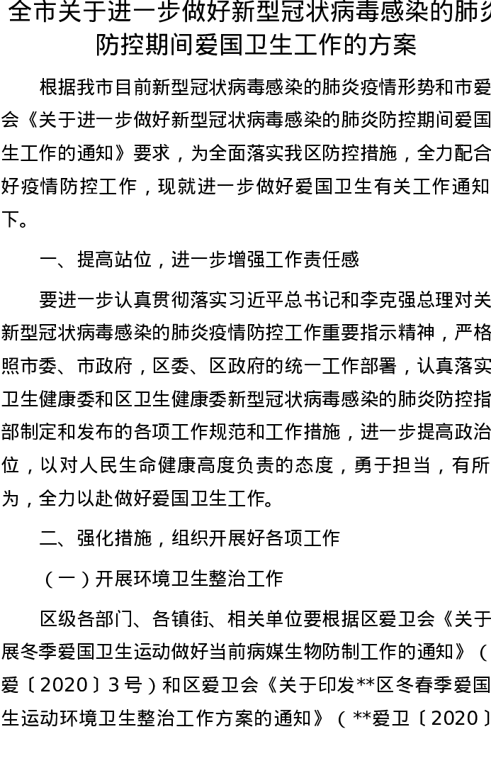 20221007全市关于进一步做好新型冠状病毒感染的肺炎防控期间爱国卫生工作的方案