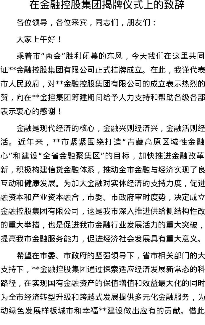 20221002在金融控股集团揭牌仪式上的致辞