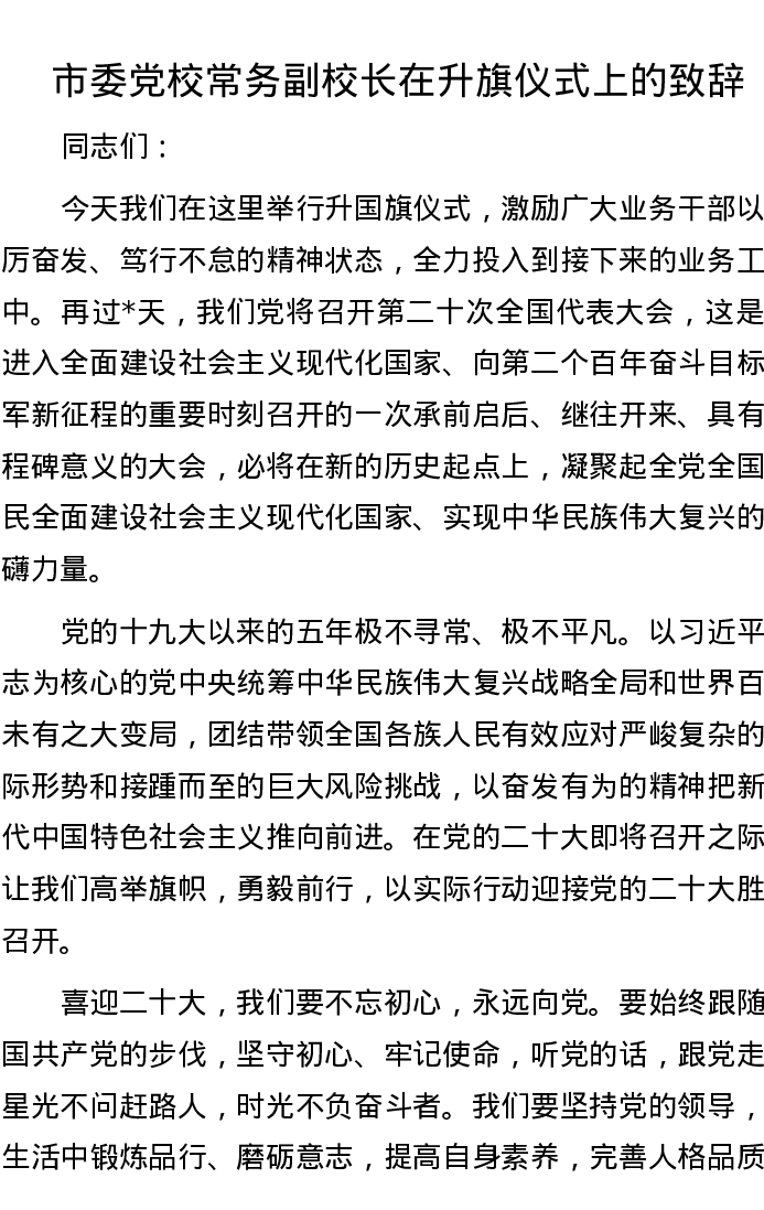 20221009市委党校常务副校长在升旗仪式上的致辞