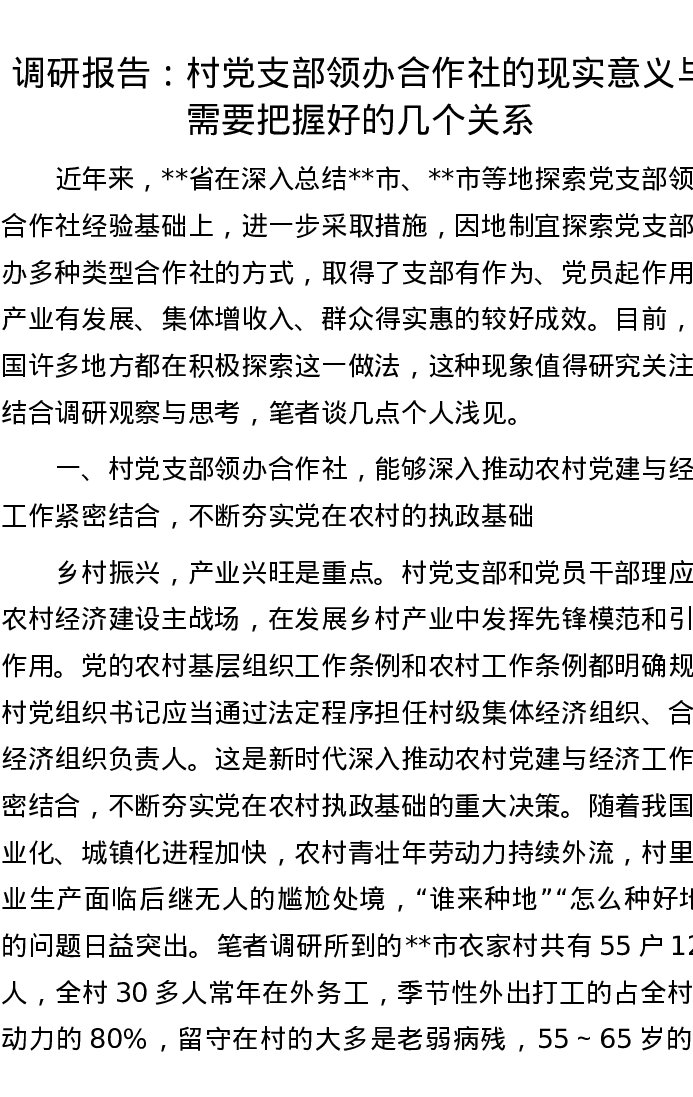 20220926调研报告:村党支部领办合作社的现实意义与需要把握好的几个关系