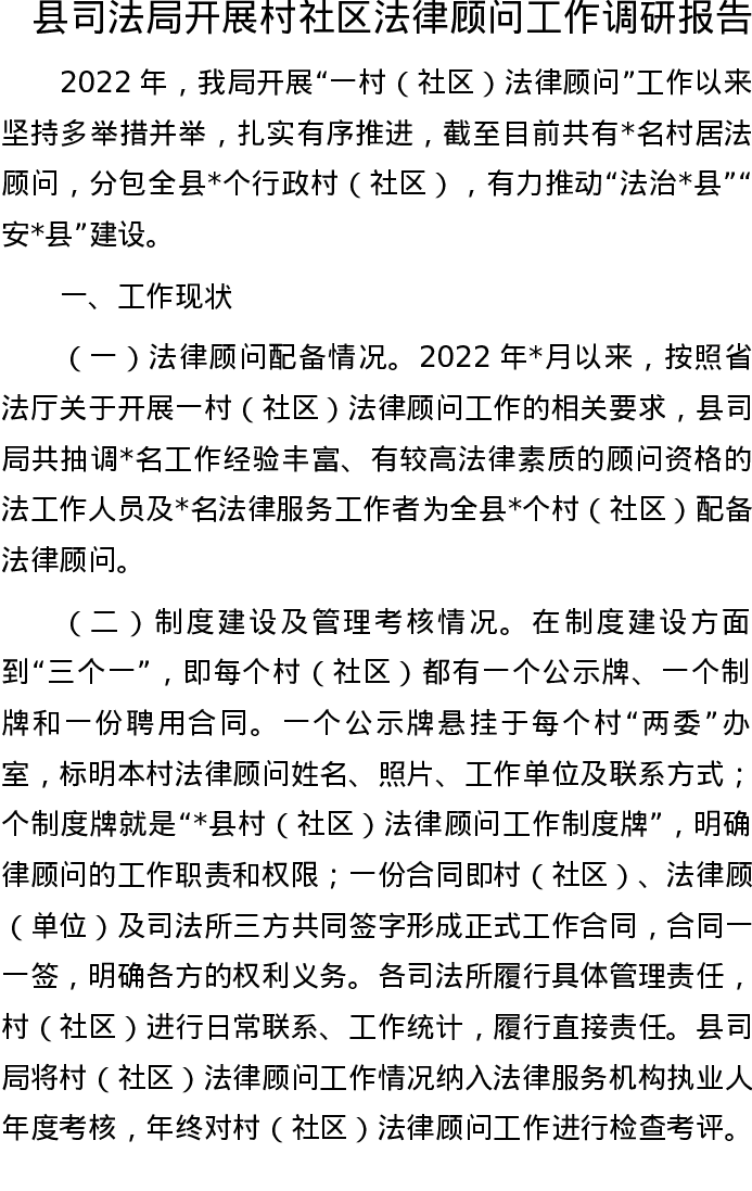 20220929县司法局开展村社区法律顾问工作调研报告