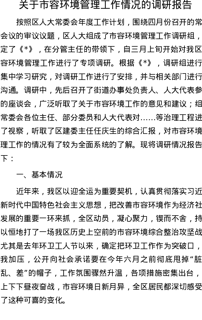 20221001关于市容环境管理工作情况的调研报告