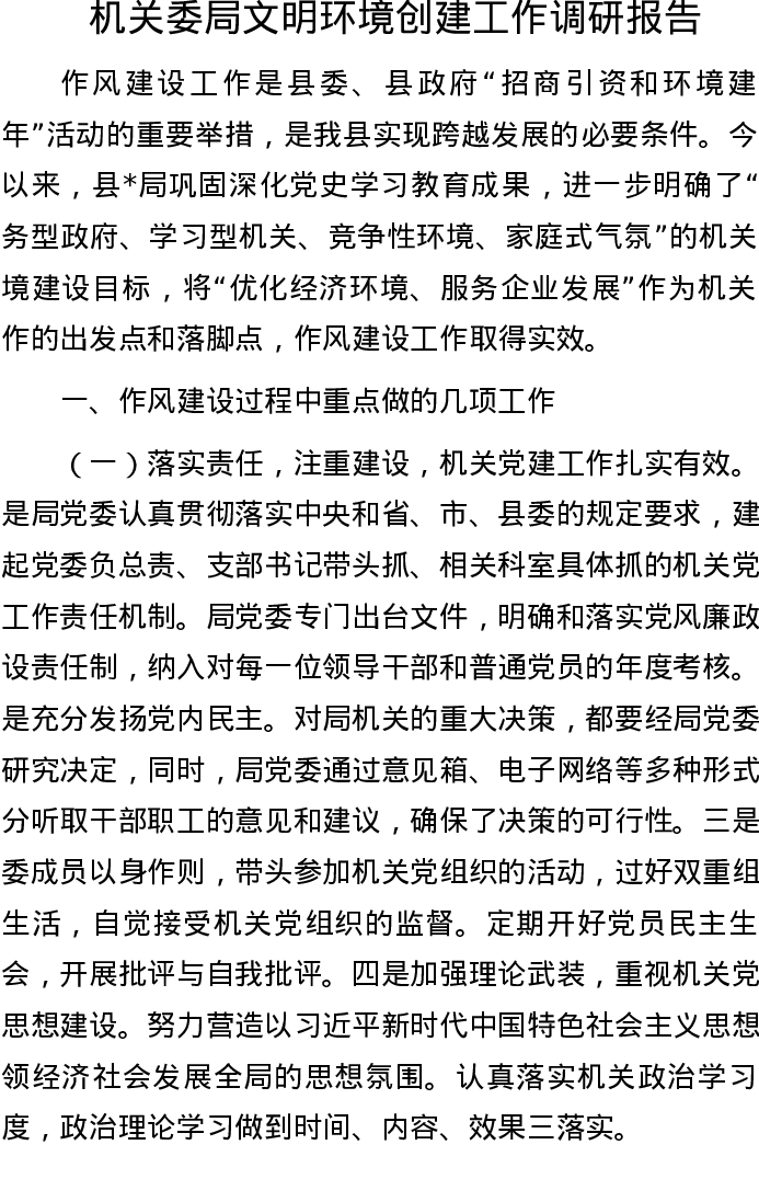 20221001机关委局文明环境创建工作调研报告