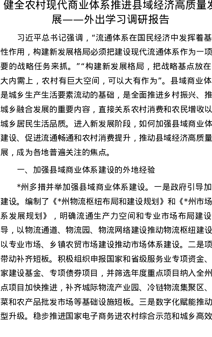 20221002健全农村现代商业体系推进县域经济高质量发展——外出学习调研报告