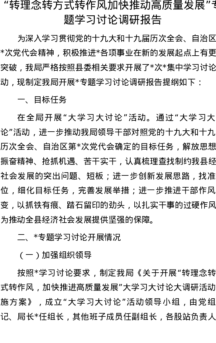 20221006“转理念转方式转作风 加快推动高质量发展”专题学习讨论调研报告