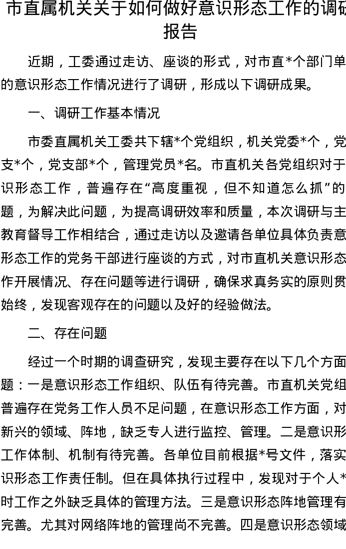 20221006市直属机关关于如何做好意识形态工作的调研报告