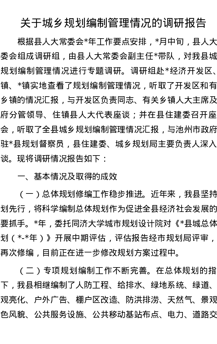 20221013关于城乡规划编制管理情况的调研报告