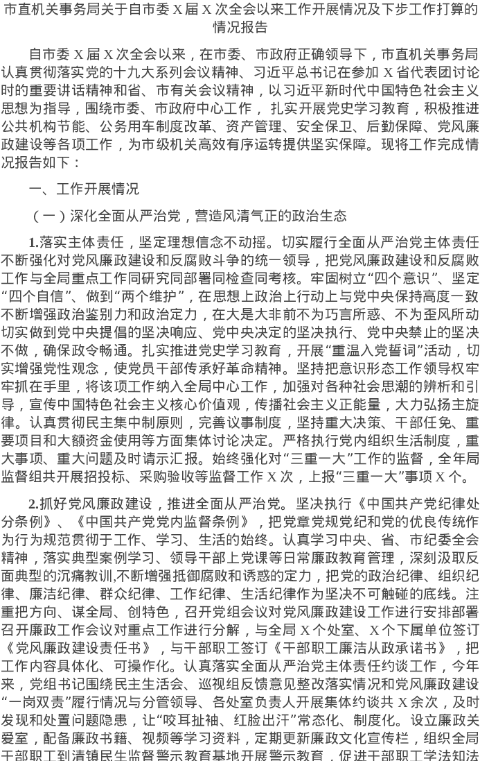 20220311市直机关事务局关于自市委X届X次全会以来工作开展情况及下步工作打算的情况报告