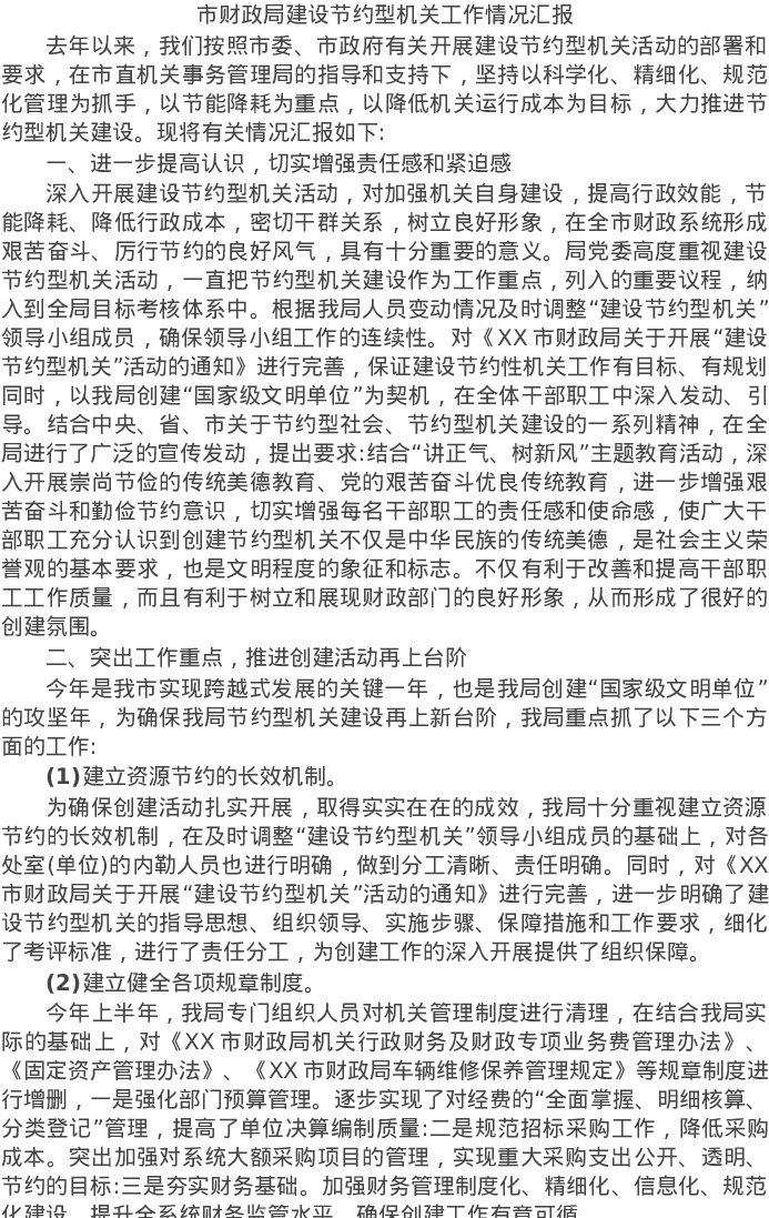 20220320市财政局建设节约型机关工作情况汇报