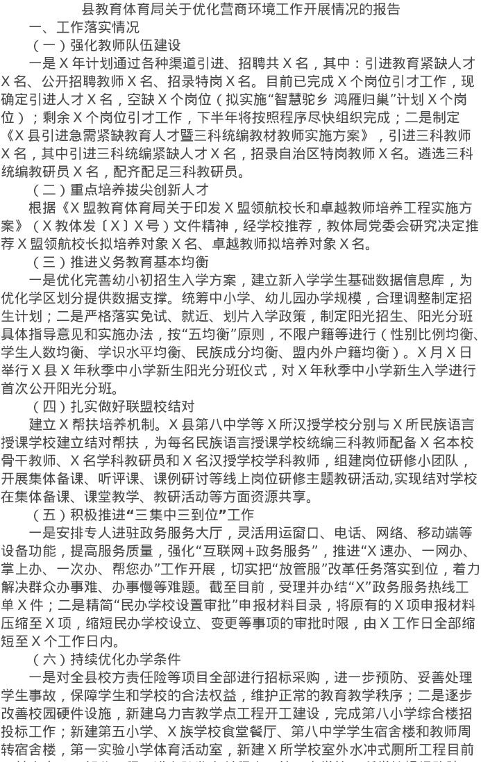 20220329县教育体育局关于优化营商环境工作开展情况的报告