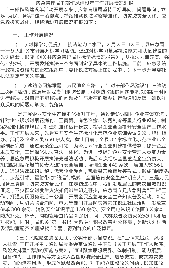 20220331应急管理局干部作风建设年工作开展情况汇报