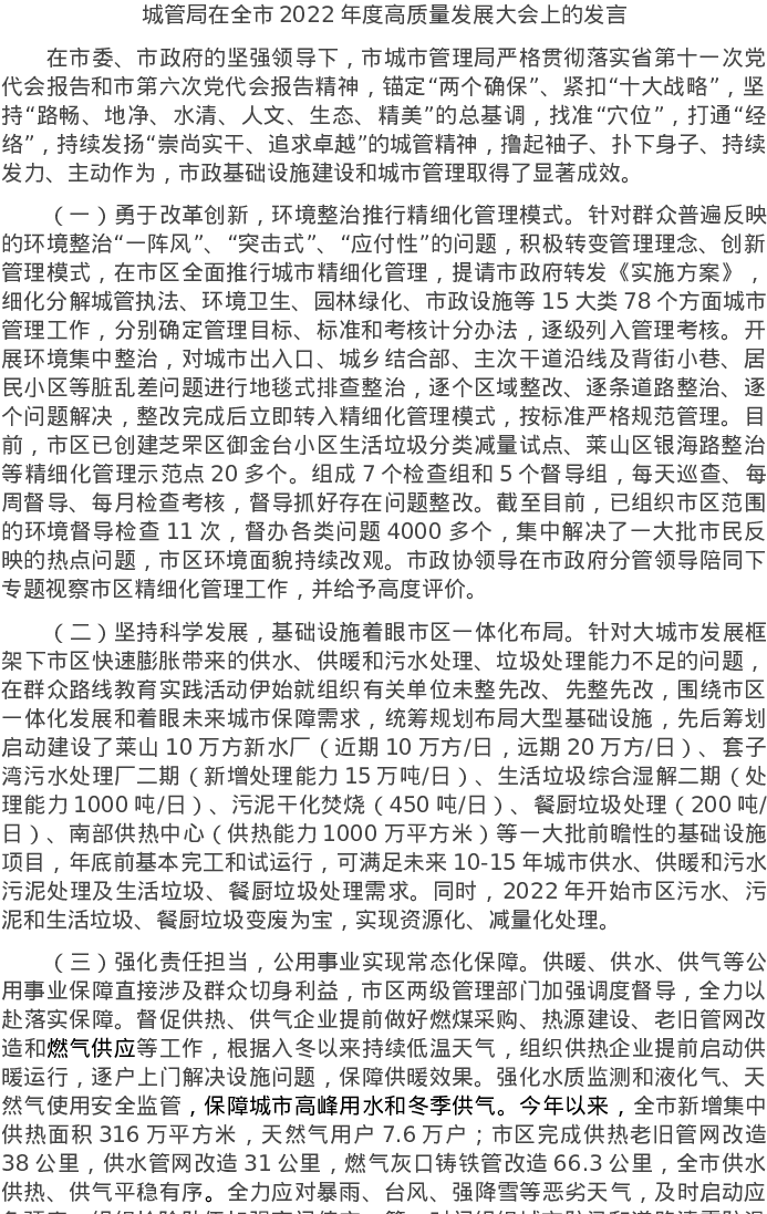 20220401城管局在全市2022年度高质量发展大会上的发言