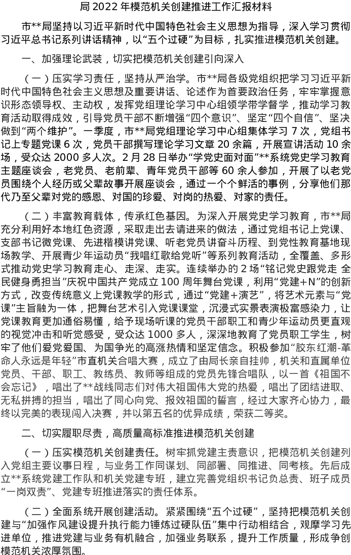 20220401局2022年模范机关创建推进工作汇报材料