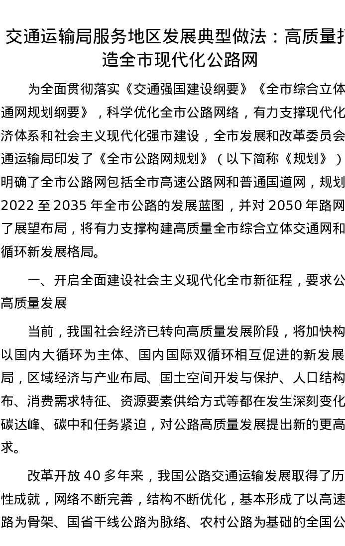 交通运输局服务地区发展典型做法:高质量打造全市现代化公路网