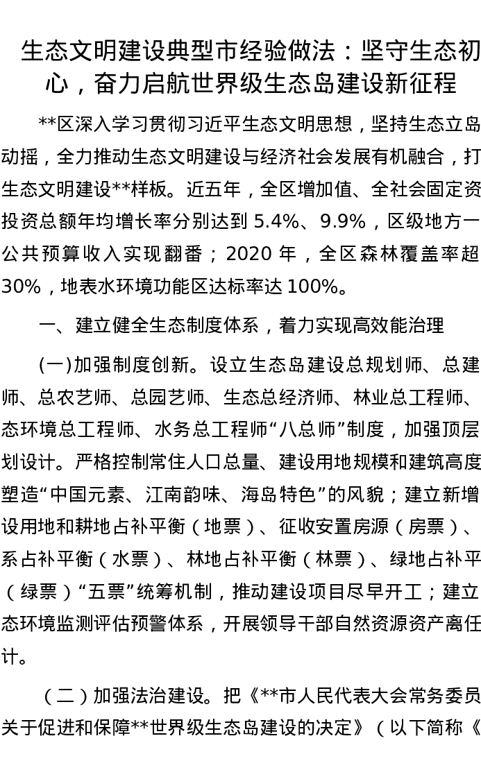 生态文明建设典型市经验做法:坚守生态初心,奋力启航世界级生态岛建设新征程