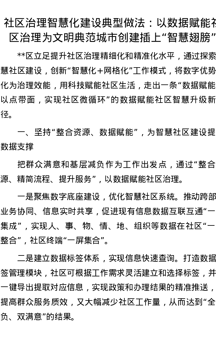 社区治理智慧化建设典型做法:以数据赋能社区治理为文明典范城市创建插上“智慧翅膀”