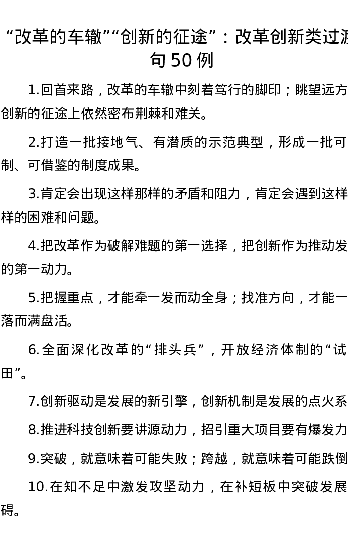 20221019【写作素材】“改革的车辙”“创新的征途”:改革创新类过渡句50例