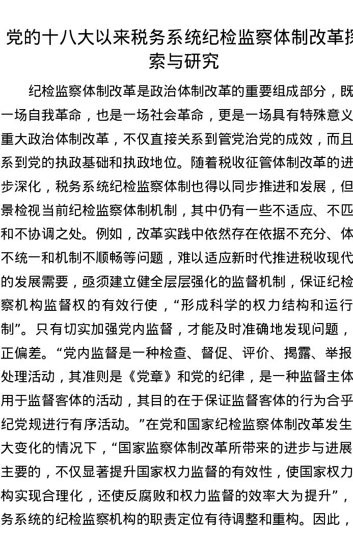 党的十八大以来税务系统纪检监察体制改革探索与研究
