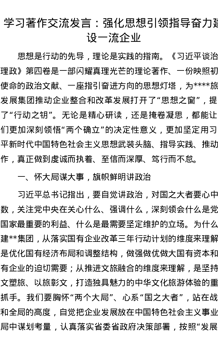 学习著作交流发言:强化思想引领指导 奋力建设一流企业