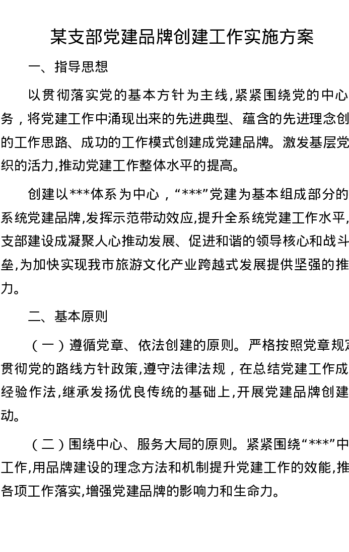 某支部党建品牌创建工作实施方案