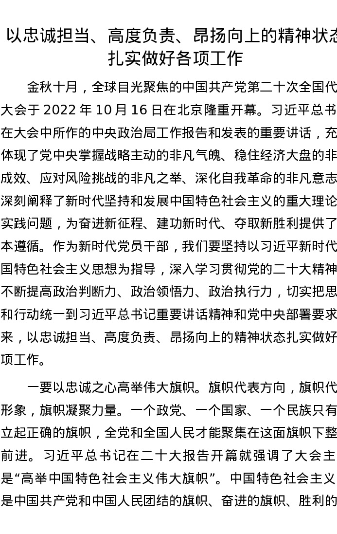 以忠诚担当、高度负责、昂扬向上的精神状态扎实做好各项工作