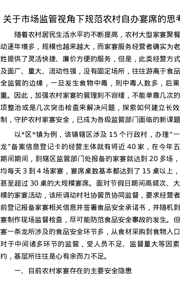 关于市场监管视角下规范农村自办宴席的思考
