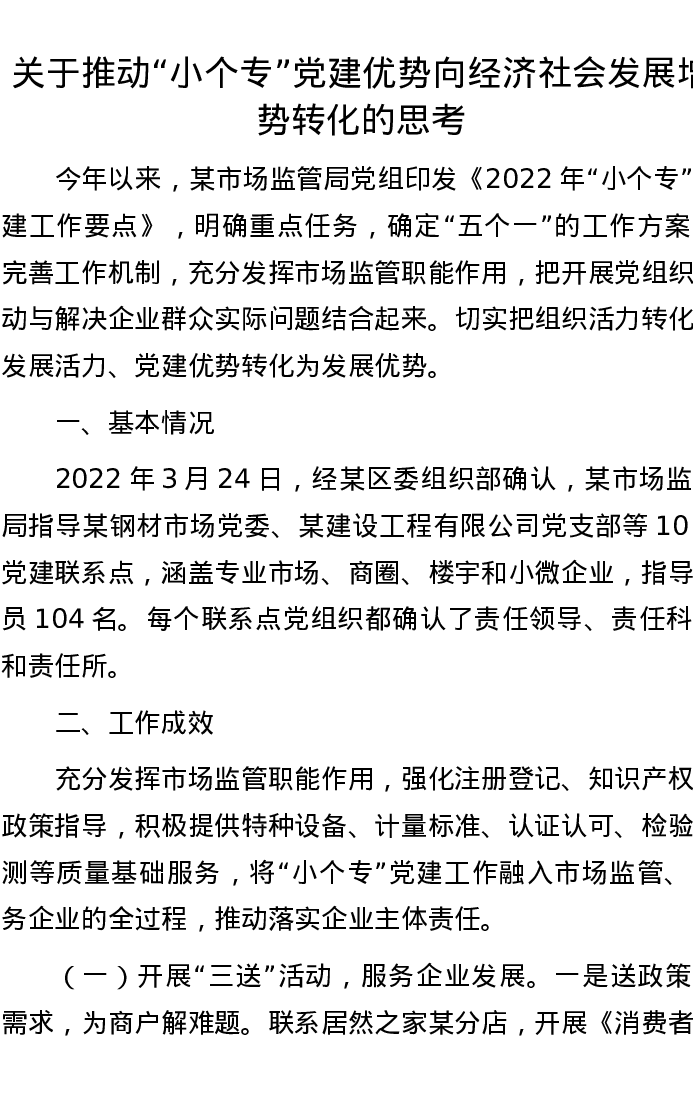 关于推动“小个专”党建优势向经济社会发展增势转化的思考