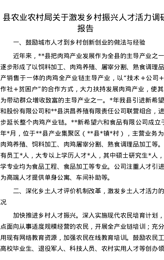 县农业农村局关于激发乡村振兴人才活力调研报告