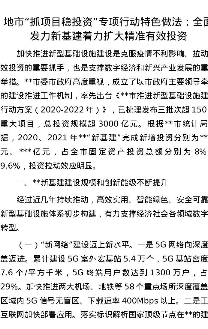 地市“抓项目稳投资”专项行动特色做法:全面发力新基建 着力扩大精准有效投资
