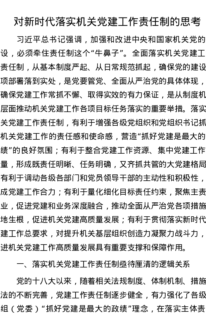 对新时代落实机关党建工作责任制的思考