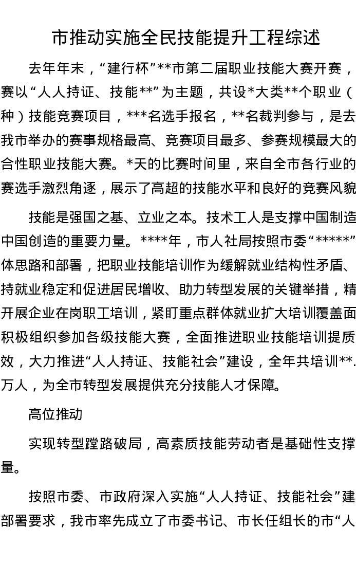 市推动实施全民技能提升工程综述