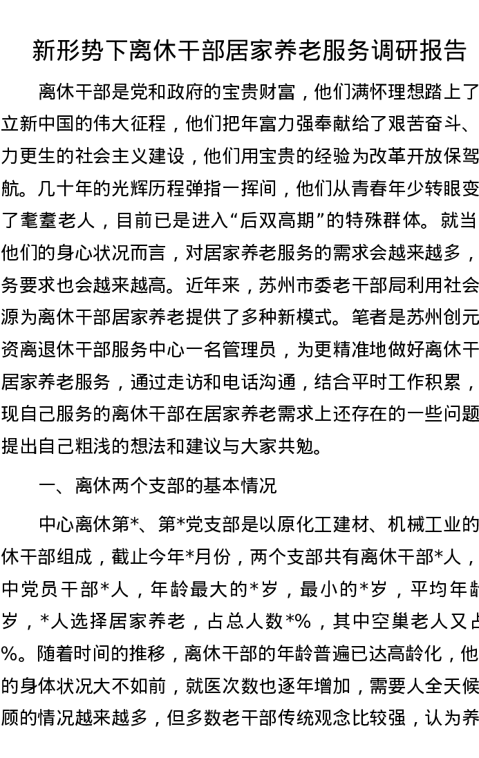 新形势下离休干部居家养老服务调研报告