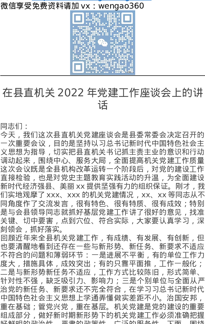 在县直机关2022年党建工作座谈会上的讲话